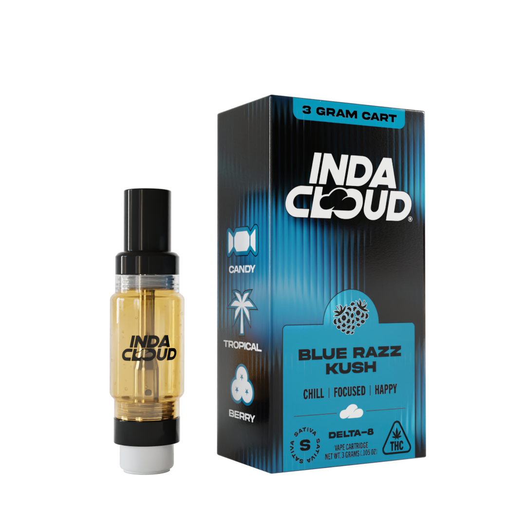 Indacloud 3G Delta 8 Cartridges - Blue Razz Kush (Sleeve of 5)