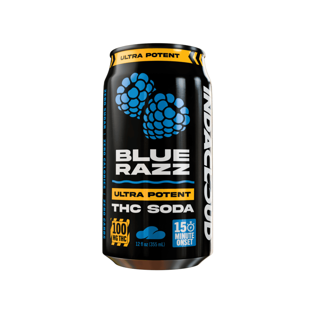 Indacloud Infused 12oz 100mg Cannabis Soda - Blue Razz (4ct) - Case