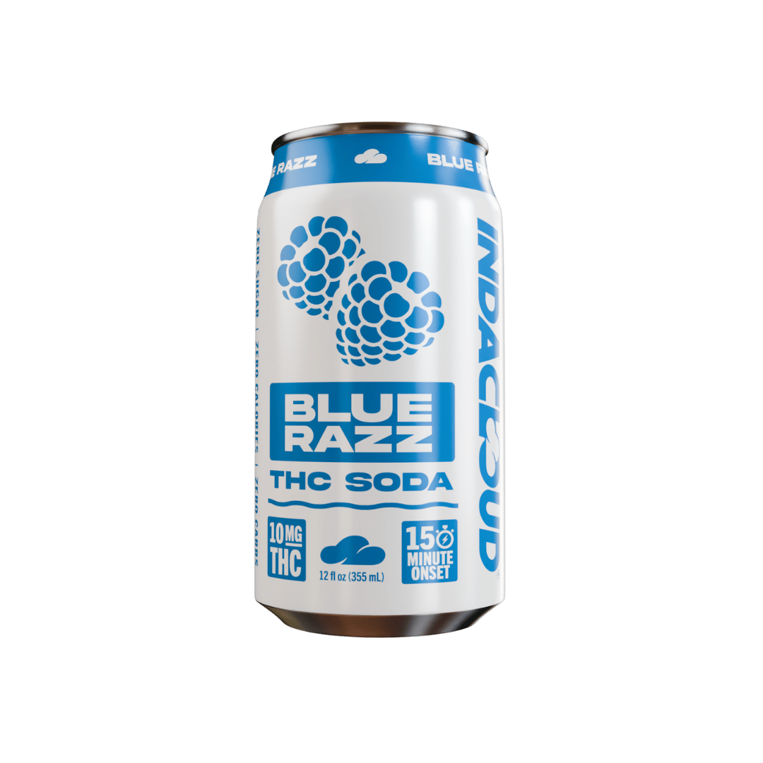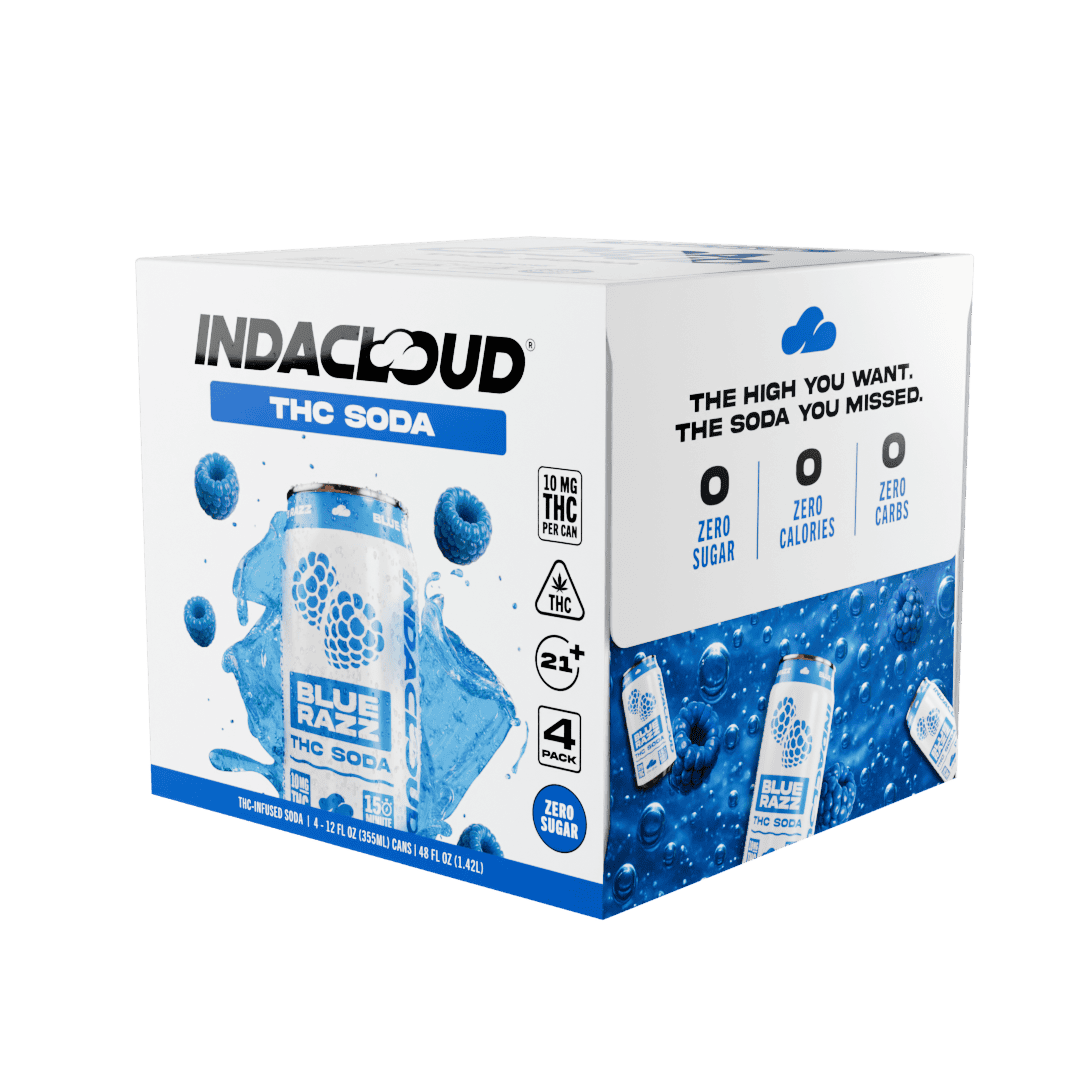 Indacloud Infused 12oz 10mg Cannabis Soda - Blue Razz (4ct) - 1/2 Case