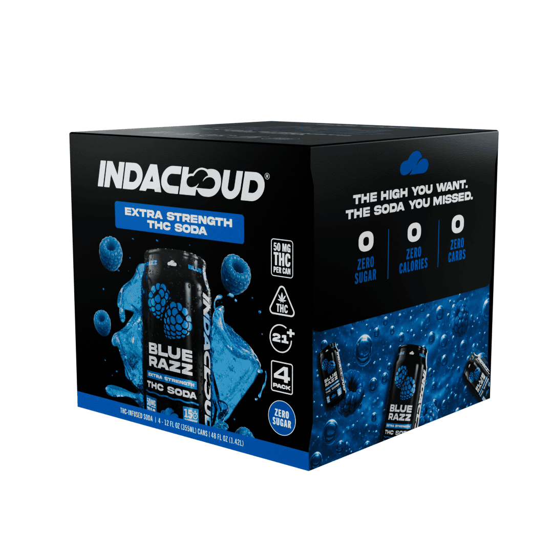 Indacloud Infused 12oz 50mg Cannabis Soda - Blue Razz (4ct) - Case